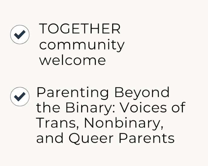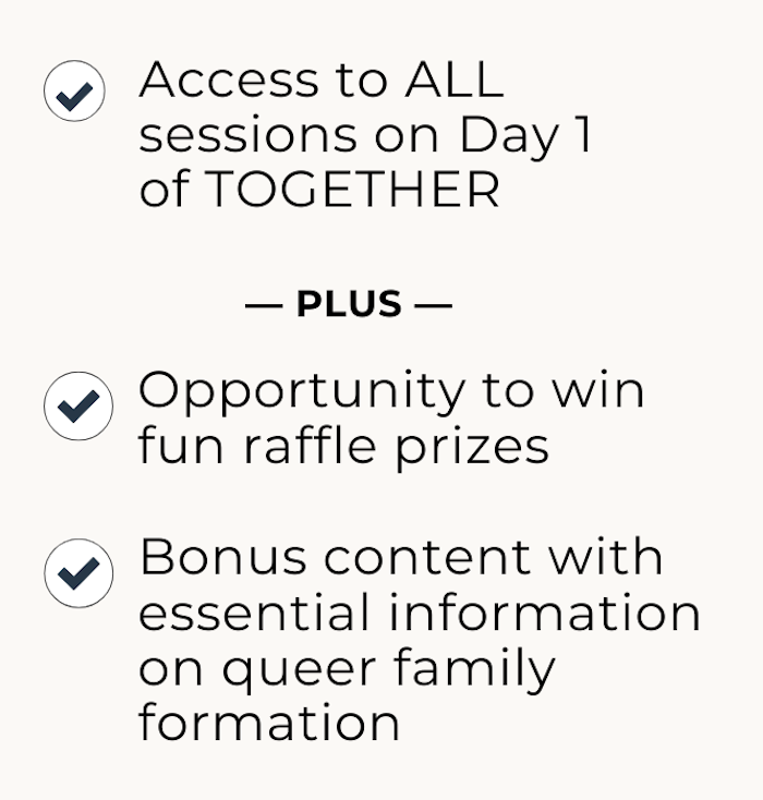 TOGETHER is a virtual conference created by and for queer parents, queer parents-to-be, and the professionals who support them.