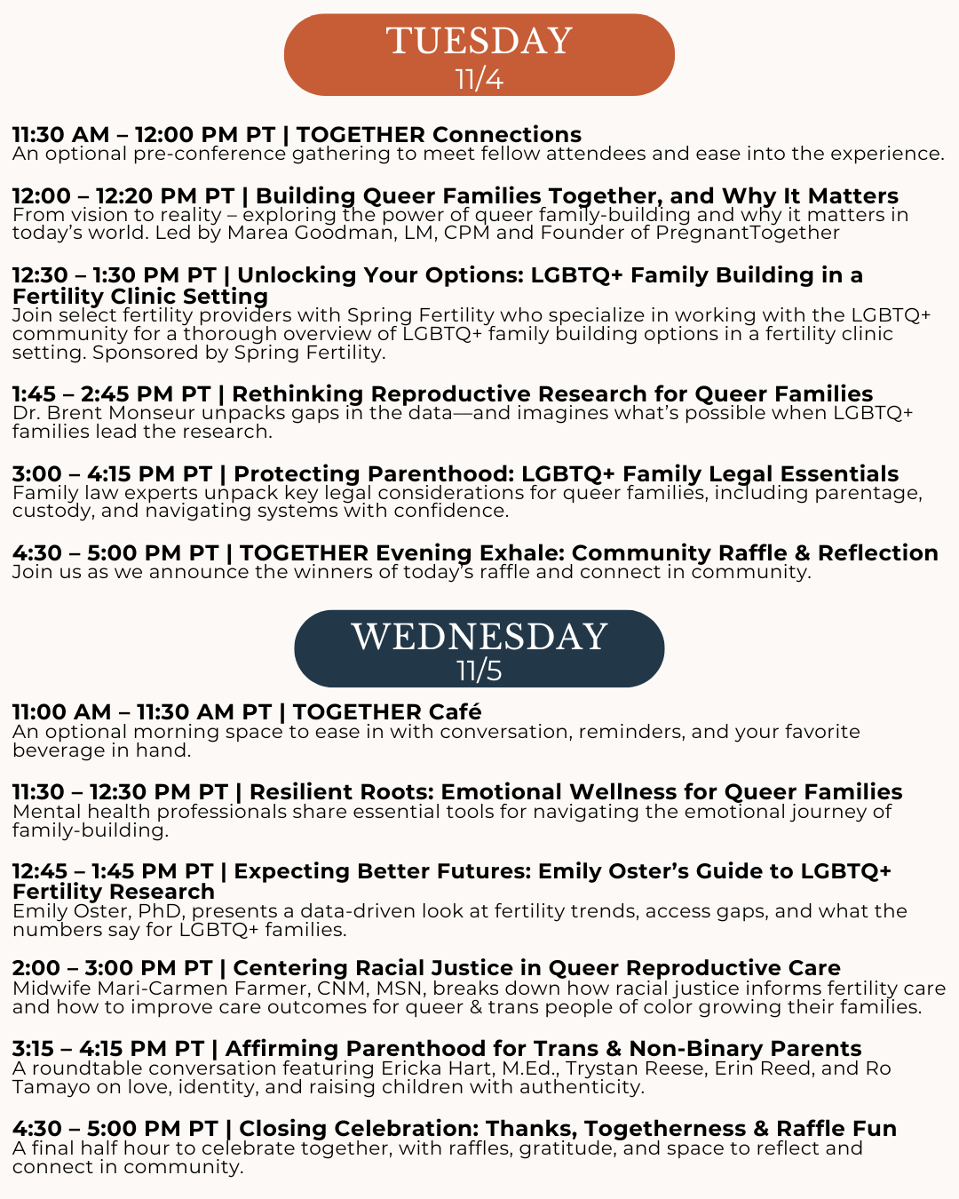 Hosted by PregnantTogether, this two-day event brings our community into conversation with the experts, advocates, and care providers who support people through every stage of queer family building.